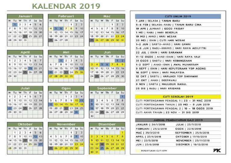 Kalendar Cuti Umum Dan Cuti Sekolah 2019